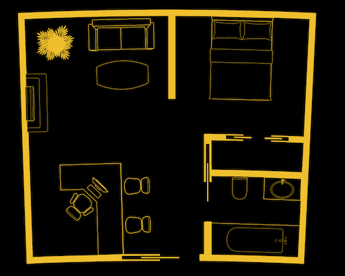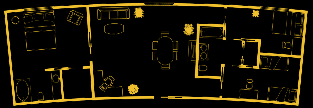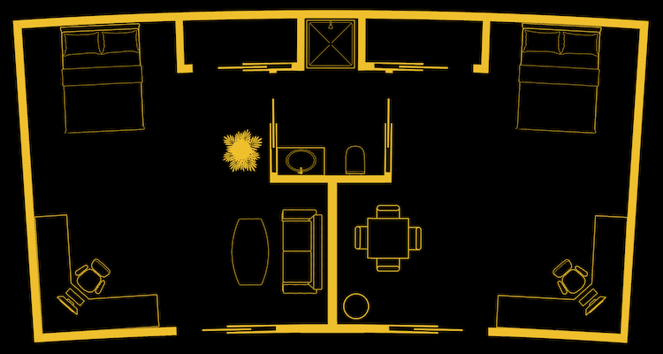The largest and most spacious of crew quarters aboard Republic are the private family suites, taking up 120 square meters of deck space each. Consisting of three separate sleeping chambers (one main and two smaller), the main bedroom has an adjoined private lavatory and walk-in closet, with another shared lavatory situated near the two remaining bedrooms. The main living room chamber provides ample habitation space, complete with a sofa, work desk, food replicator, and family dining table. Private family suites are few in number aboard Republic, and thus, are a premium commodity among the crew as they are assigned at the captain's discretion, and based purely on rank and seniority. The family suites are one of only two styles of crew quarters located on the outer rim of the ship, allowing them to have expansive viewports along the exterior bulkhead. All private family suites are located in the saucer section only.